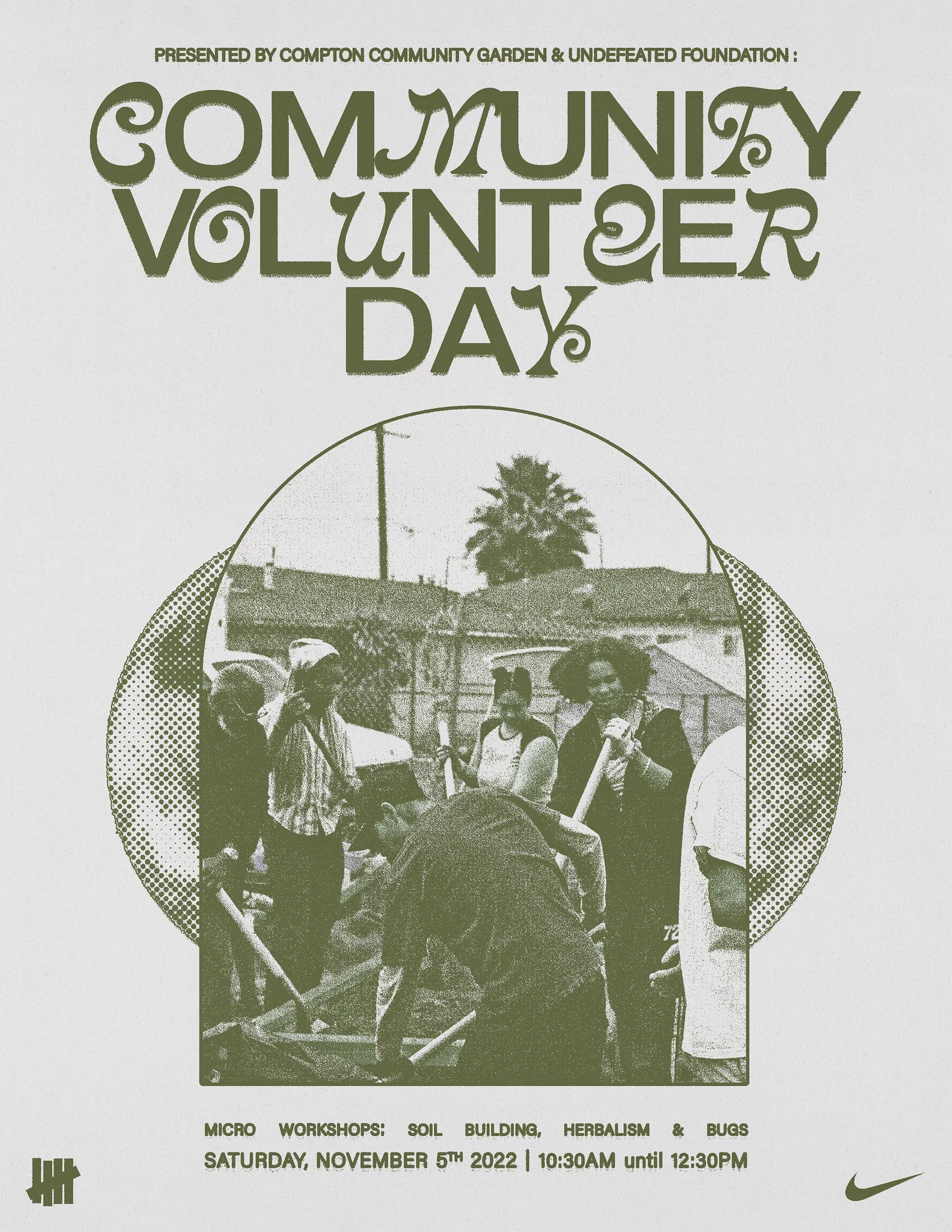 Poster and T-Shirt design for Community Volunteer Day at Compton Community Garden. In collaboration with Nike and UNDFTD