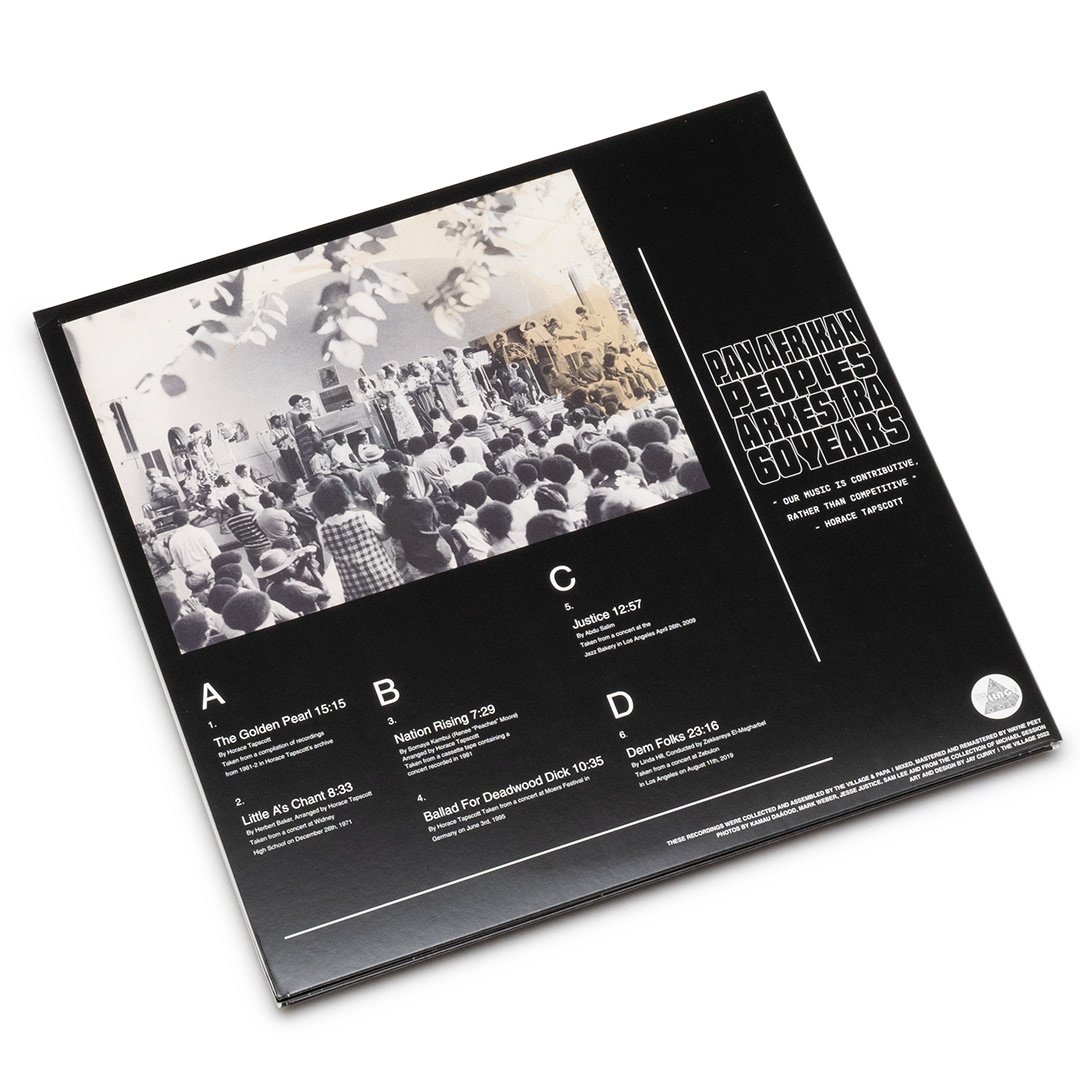 This release is the culmination of 60 years of Black history through sound. Since its conception in 1961, the Ark has had a mission echoed by every director since Horace Tapscott himself, “To preserve the music of Black composers, dead or alive. To perform this music in our neighborhoods, for our people.” The institution of the Arkestra fostered a culture of community, spirituality, Black empowerment, and most importantly, love. I am forever indebted to my ancestors and grateful to you, reading this message, for your part in the music as a listener. Peace.